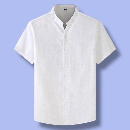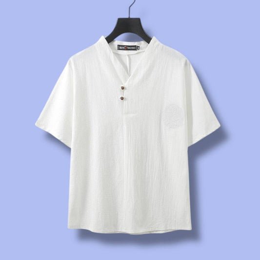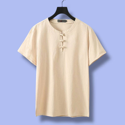 Men’s Short Sleeve O-Neck Linen Tee with Buttons