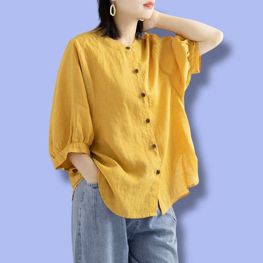 Three-Quarter Sleeve Square Neck Linen Shirt