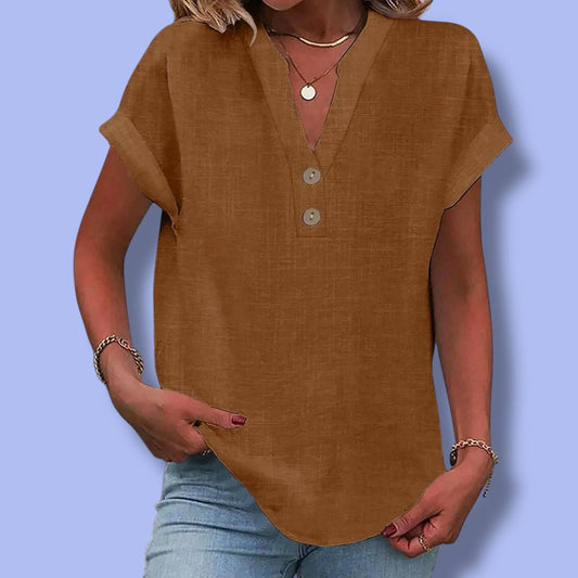 Womenâs Summer Cotton Linen V-Neck Shirt