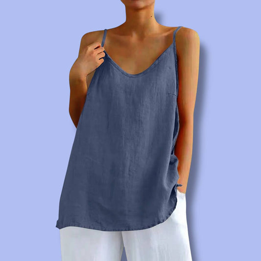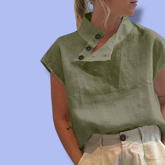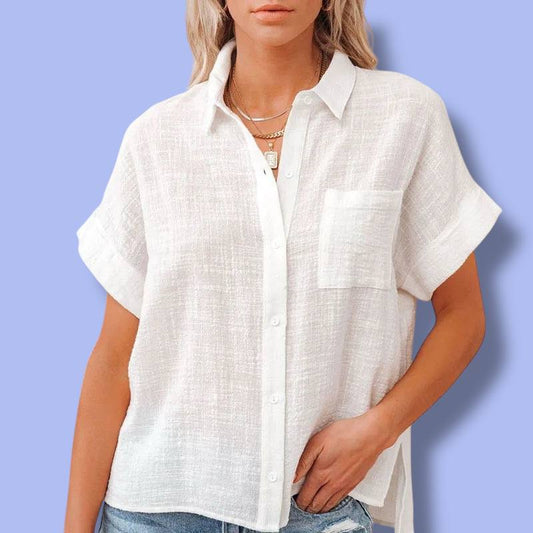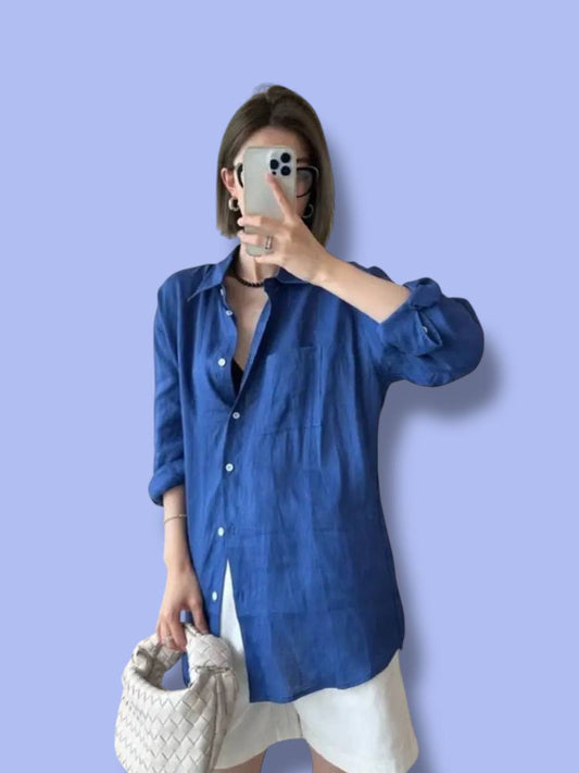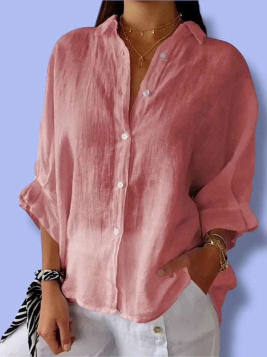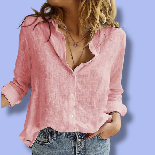 Elegant Womenâs Cotton Linen Button-Up Shirt