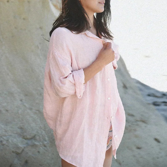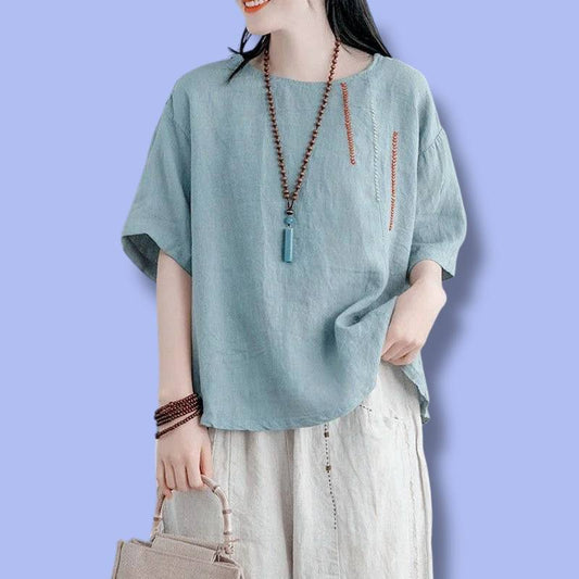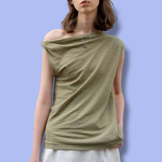 Womenâs Summer French Cotton Linen One-Shoulder Top