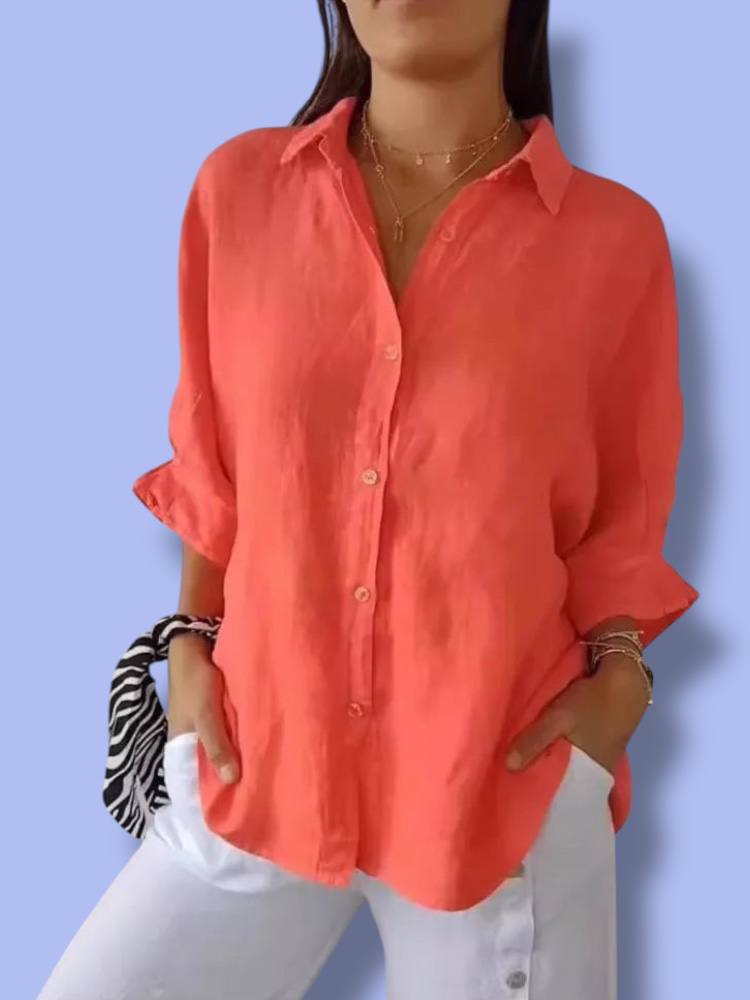 Add a charming touch to your spring and summer wardrobe with our Women’s Cotton Linen Shirt featuring an elegant back bow lace-up detail. Made from a breathable cotton-linen blend, this loose-fit blouse offers a relaxed and stylish look with a classic lapel collar and half sleeves — perfect for casual outings or sunny days.